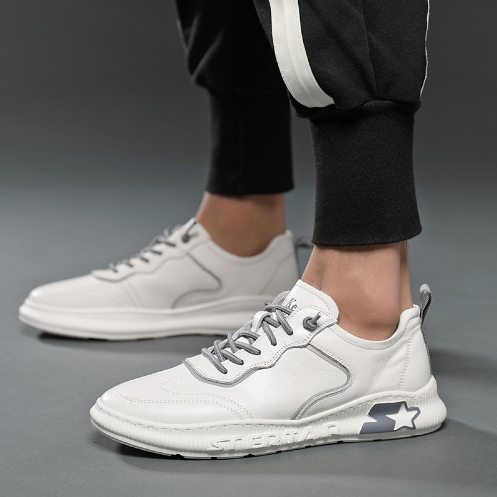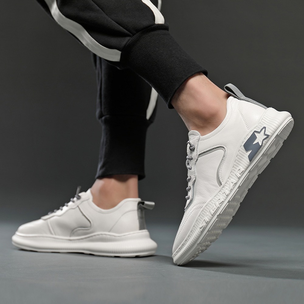 Autumn New Men's Leather Hot Style Casual Low-Cut White Sports Shoes