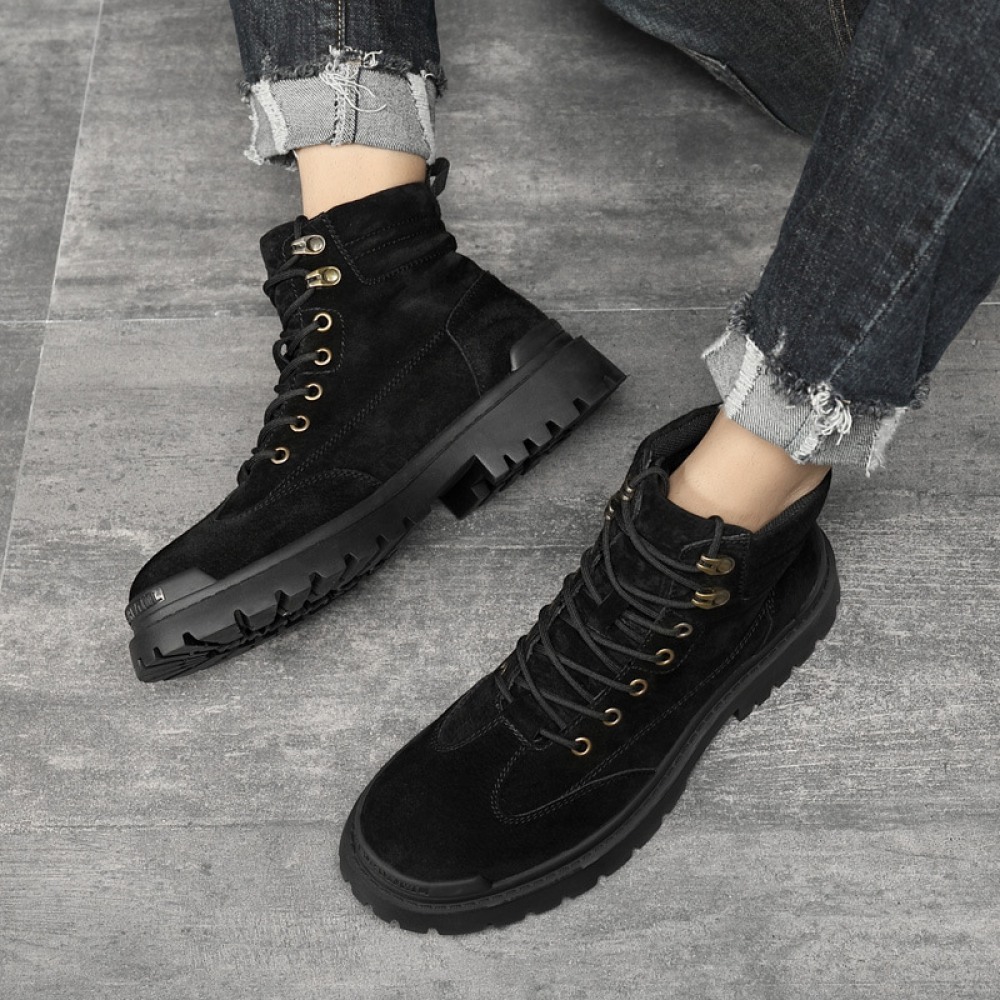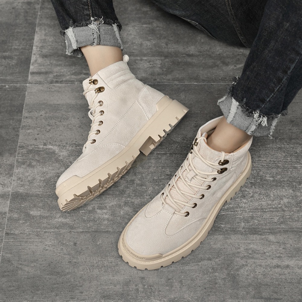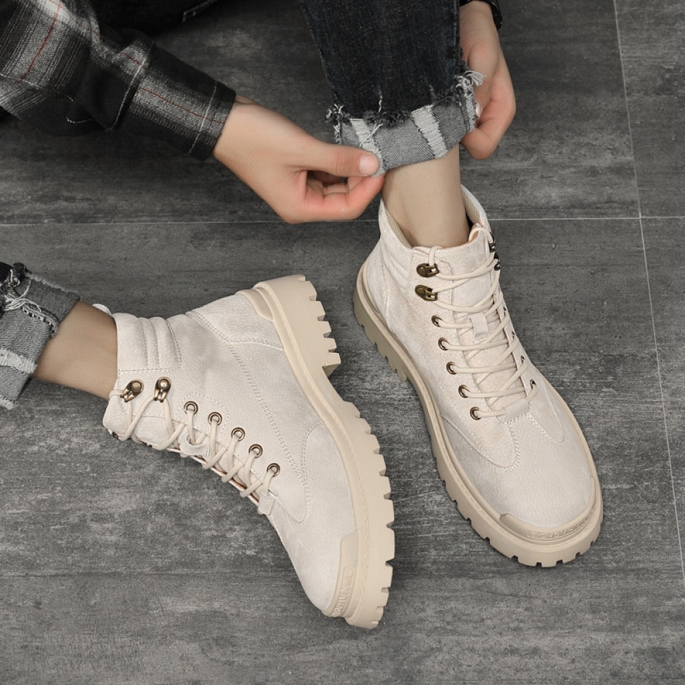 Men's British Style Tooling Boots Trend High-Top Shoes Casual Breathable Short Martin Boots