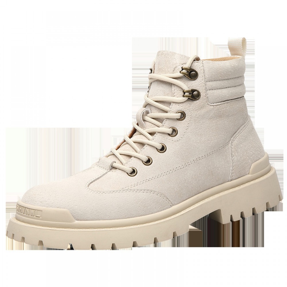 Autumn Men's New High-Top Leather Sneakers Casual Martin Boots Trendy White